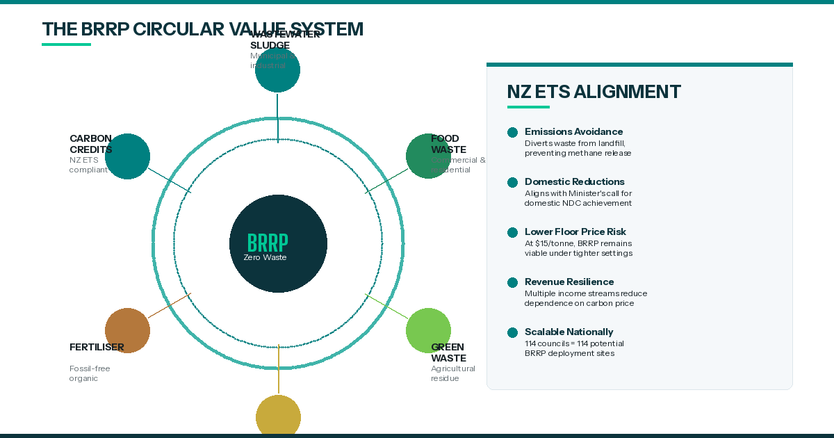 A tightening NZ ETS strengthens the business case for emissions avoidance. Lower auction volumes and a higher floor price mean the cost of emitting rises. For entities operating in the waste sector — where organic material currently goes to landfill and generates methane — the financial incentive to divert that waste and capture value grows in lockstep. ASL's BRRP technology does exactly this: it converts wastewater sludge, food waste, and industrial organic waste into biogas and organic fertiliser, avoiding landfill emissions entirely.