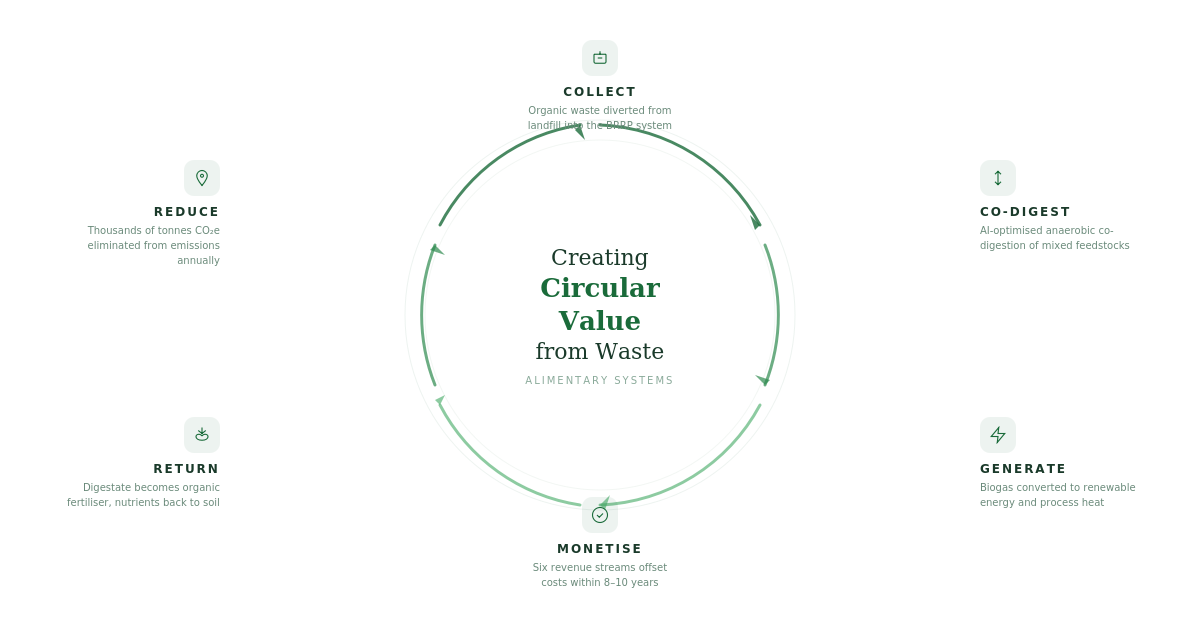 Alimentary Systems was founded in New Zealand, and that's not incidental — it's central to everything we do. We understand the particular pressures facing councils and communities here: ageing wastewater infrastructure, rising landfill levies, emissions reduction targets under the ETS, and the persistent challenge of doing more with constrained ratepayer budgets.